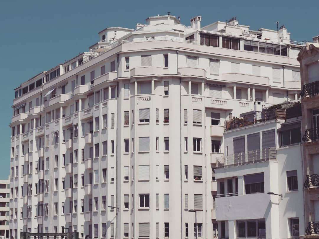 Les Nouveaux Immeubles Plage des Catalans on été battis par France Mutualiste dont on retrouve le logo sur la façade.